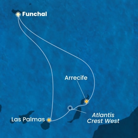 - Funchal (Madeira)->Arrecife (Lanzarote)->Las Palmas (Gran Canaria)->Funchal (Madeira)